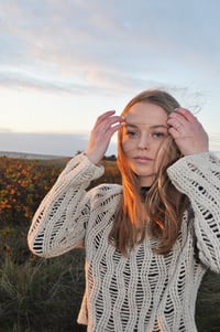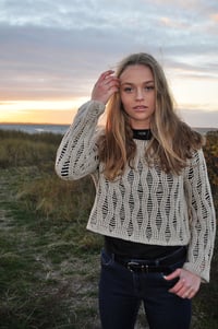 Fabulous crochet sweater that is surprisingly easy to make. It is made top-down and on a large hook - a fast make! There 2 different variations - one with a narrow waistband (grey sweater) and one with a straight edge (white sweater).